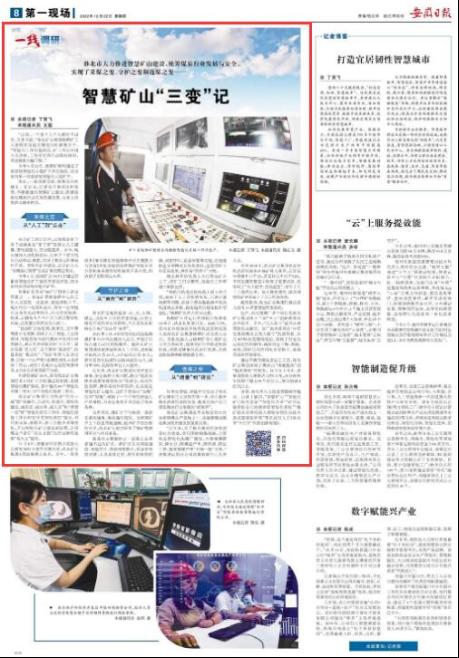 (2022年12月22日,《安徽日報》專題報道 智慧礦山“三變”記。)