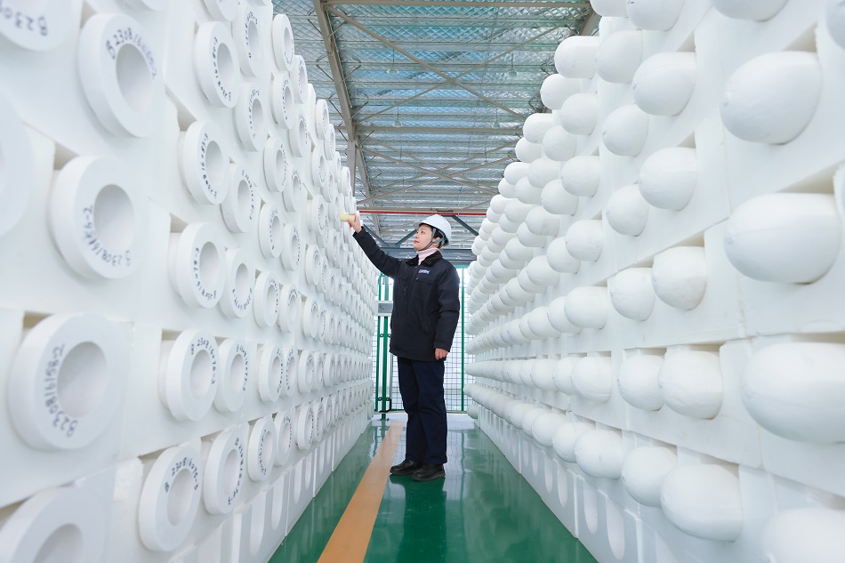 紫朔環(huán)境公司一名工人正在檢查生產(chǎn)的陶瓷濾管質(zhì)量