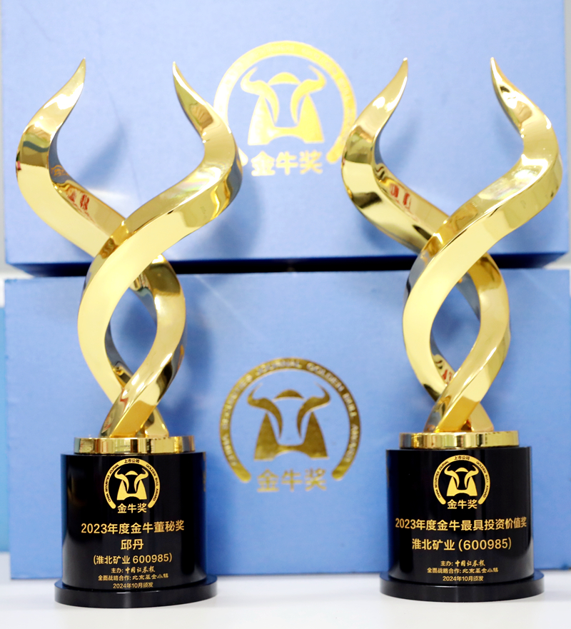 2024年10月24日,由中國證券報與南通市人民政府主辦、北京基金小鎮(zhèn)全面戰(zhàn)略合作的2024上市公司高質(zhì)量發(fā)展論壇暨第二十六屆上市公司金牛獎頒獎典禮于江蘇南通舉行,淮北礦業(yè)以穩(wěn)健提升的治理能力、高質(zhì)量的信息披露、重視股東回報增進價值等方面的優(yōu)異表現(xiàn),榮獲“2023年度金牛最具投資價值獎”,公司董事會秘書邱丹榮獲“2023年度金牛董秘獎”。