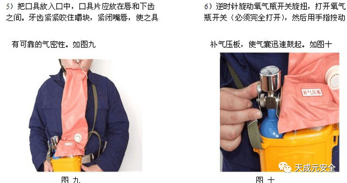 10)上述操作完成后(操作要求在30秒內(nèi)完成),開始退離災(zāi)區(qū)。途中感到吸氣不足時(shí)不要驚慌,應(yīng)放慢腳步,做深長呼吸,待氣量充足時(shí)再快步行走。